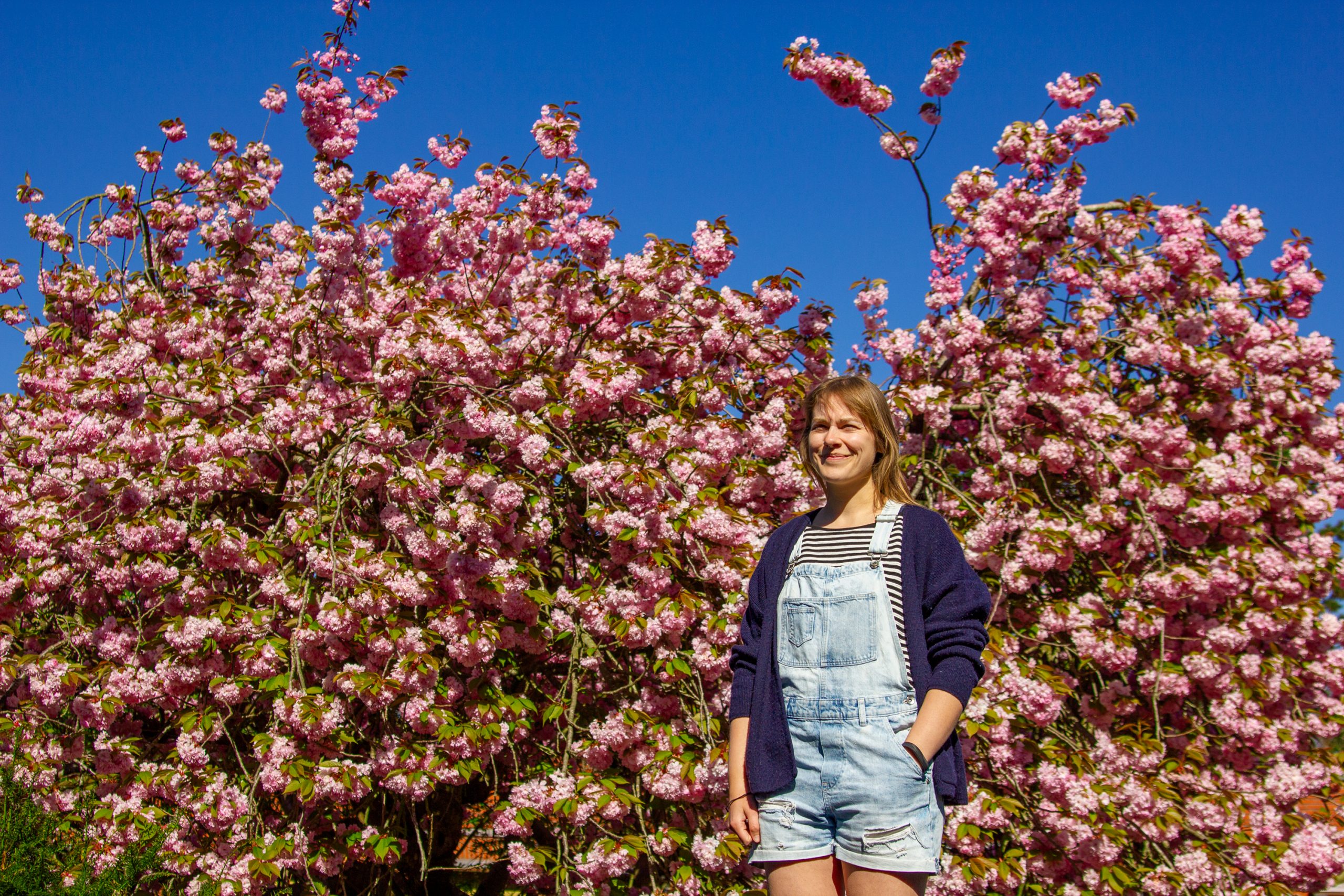Ook de boom naast Floris’ (uitgestorven) kantoor was nu op z’n mooist. Op mijn verzoek gingen we er in het weekend even langs om te zien hoe het met de boom was. Je kunt daar zo mooi op een dakje staan, perfect voor de foto :-) Ja, bloesemblijheid.