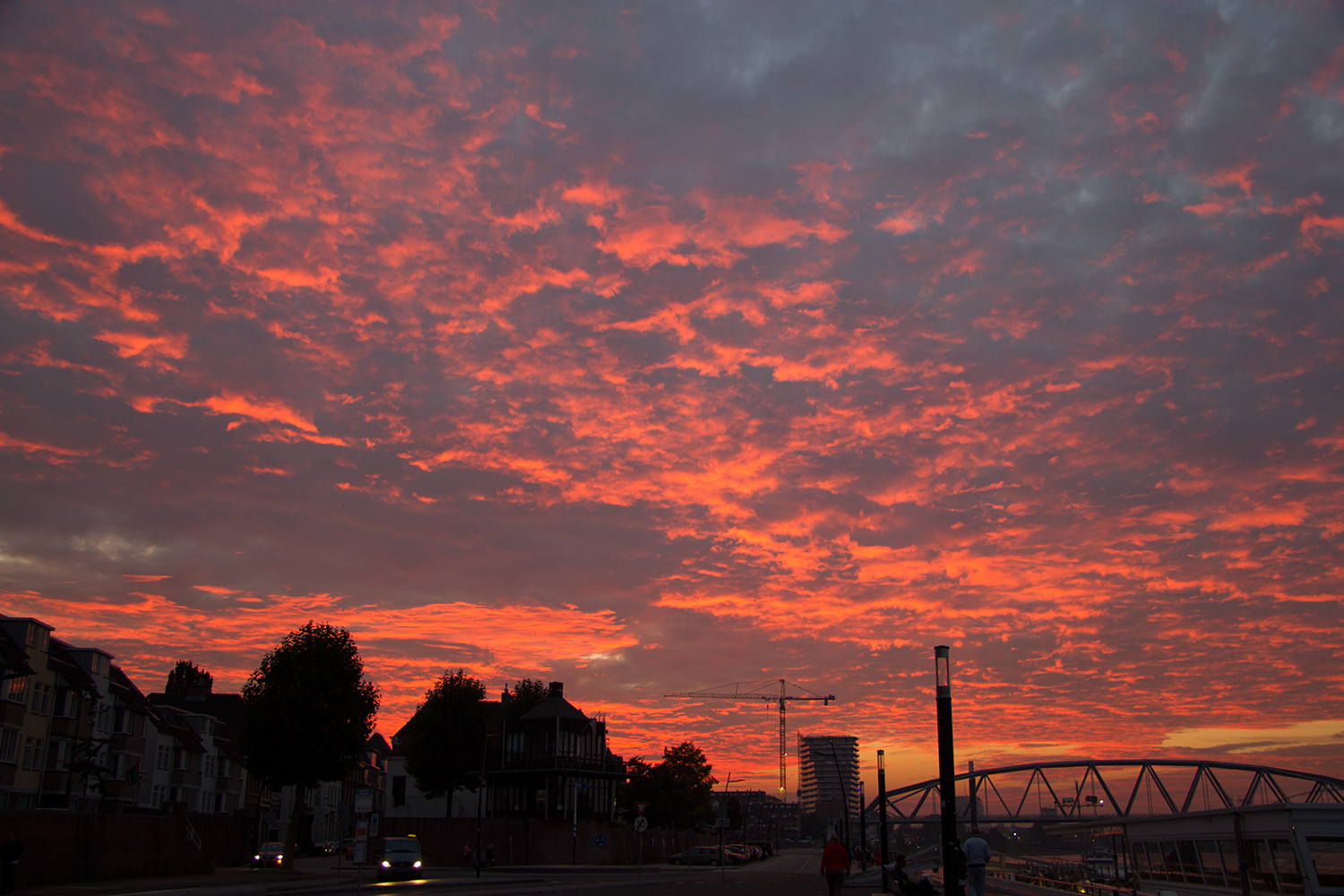 Ik zou veel woorden wijden aan het weekend dat ik in Nijmegen doorbracht, met mijn meneer. Hoe verrukkelijk we uit eten gingen bij mijn lievelingskoffietentje, wat soms zomaar ineens een restaurantje is. En hoe je daar op de placemats kon tekenen, en ik zou bovendien schrijven over de lucht die die avond op zijn mooist was.