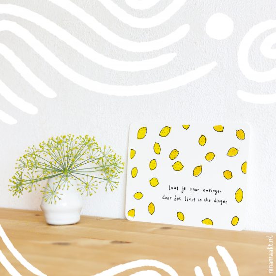 Zo tegen de zomervakantie heb ik vaak wat minder inspiratie voor eigen ontwerpen. Ik weet niet precies waar dat aan ligt, maar eigenlijk is het elk jaar zo. In de zomermaanden staat mijn hoofd daar gewoon iets minder naar, dus verschijnen er vaak niet veel nieuwe kaarten in mijn webshop. Wat daarentegen wél lukt, is illustraties/ontwerpen maken op maat. Dus dat deed ik de afgelopen maand in overvloed. Een paar geboortekaarten, maar ook een trouwkaart, een poster en een trouwcadeau. Die laatste was voor iemand die ik ken, en dat maakte het extra bijzonder om ermee bezig te zijn. Fijn om te mogen doen!