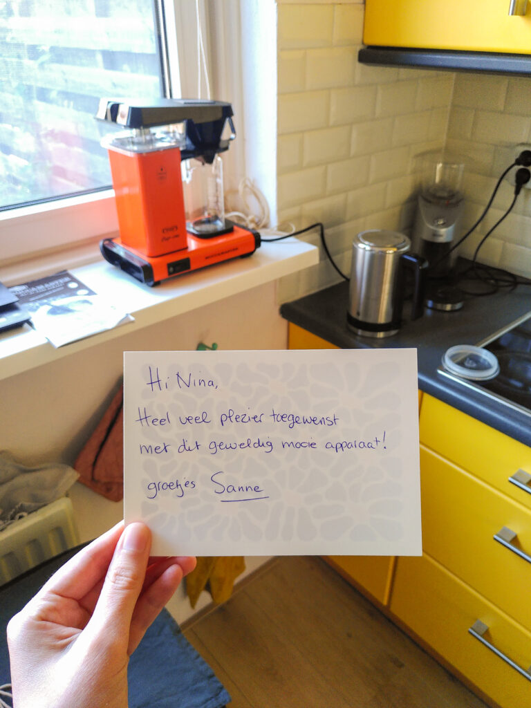 En met al het nieuwe dat er gebeurde, had ik ook zin in nieuwe spullen. Oeps. Alsof ik de nieuwe ervaringen zichtbaar en tastbaar wilde maken, vorm wilde geven aan het gevoel dat ik in nieuw gebied verkeer. Ik kocht het meeste tweedehands, dat scheelt. Een oranje koffiezetapparaat, een stoel, een stapeltje kleding in fijne kleuren. En vooruit, misschien ook nog een speakertje en een pet. Spullen maken niet gelukkig hè, maar ik geef het toe: mijn zintuigen gingen er deze maand goed op.