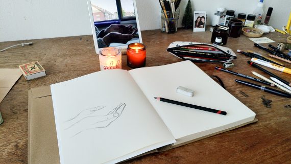 Nou en nu we toch in de persoonlijke modus zitten: ik daagde mezelf uit om in mei elke avond een pagina van mijn schetsboek te vullen. En dan niet met gebakken lucht, maar met iets wat me bezighoudt, iets wat ik het afgelopen jaar heb ontdekt of wat voor shizzle op zielsniveau dan ook.