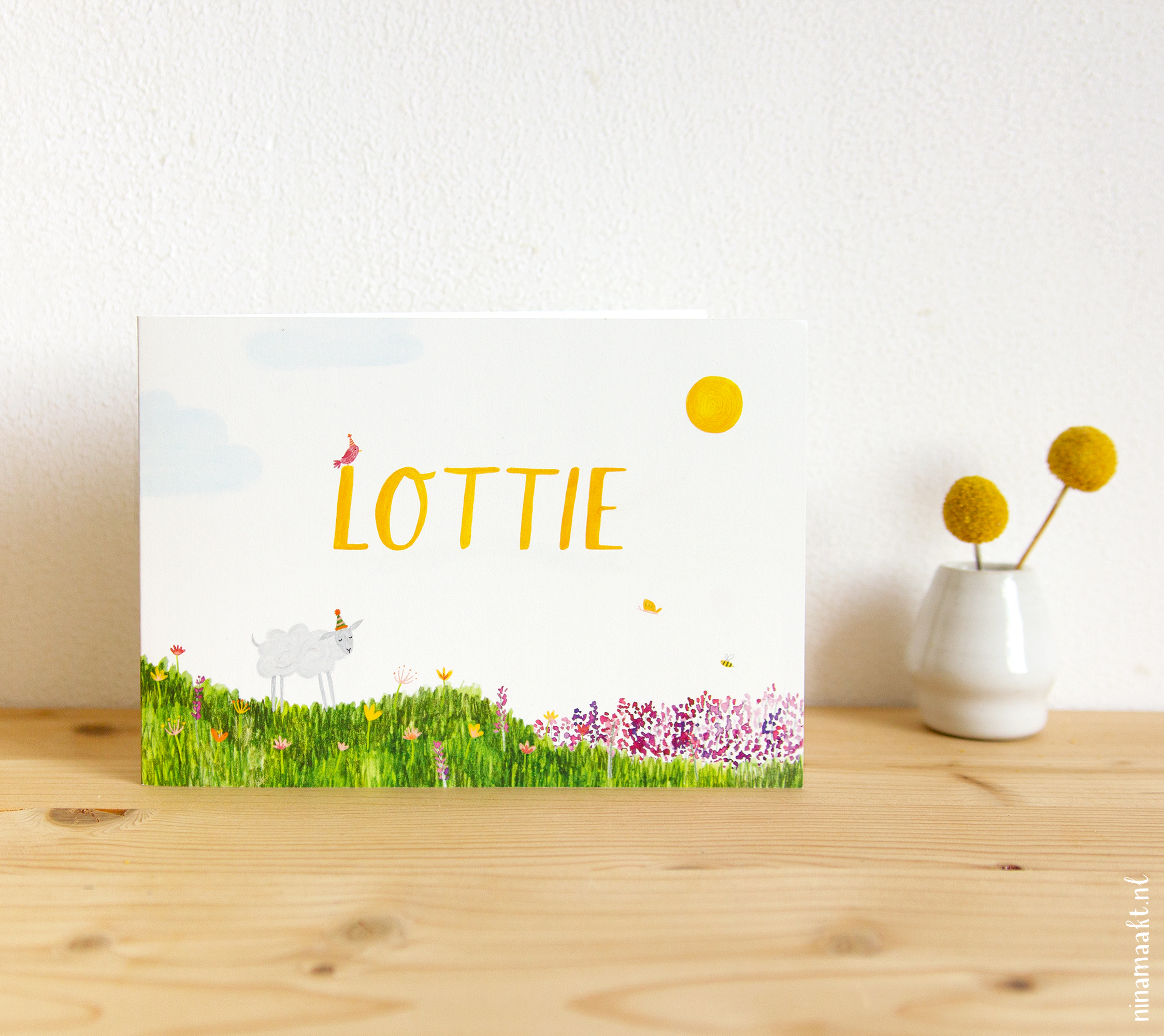 Wat mijn werk betreft ging alles eigenlijk best wel vanzelf. Ik werk(te) aan verschillende geboorte- en trouwkaarten, waardoor ik elke week wel één of twee deadlines had. Een conceptversie van een ontwerp naar de ene klant, een definitieve versie naar een ander, ondertussen nog enveloppen en een proefdruk bestellen voor iemand anders, et cetera. Ik had genoeg te doen, maar geen grootse stressvolle projecten, dus dat was eigenlijk heel fijn. En kijk, de kaart van baby Lottie ging naar de drukker en kwam er zo uit: