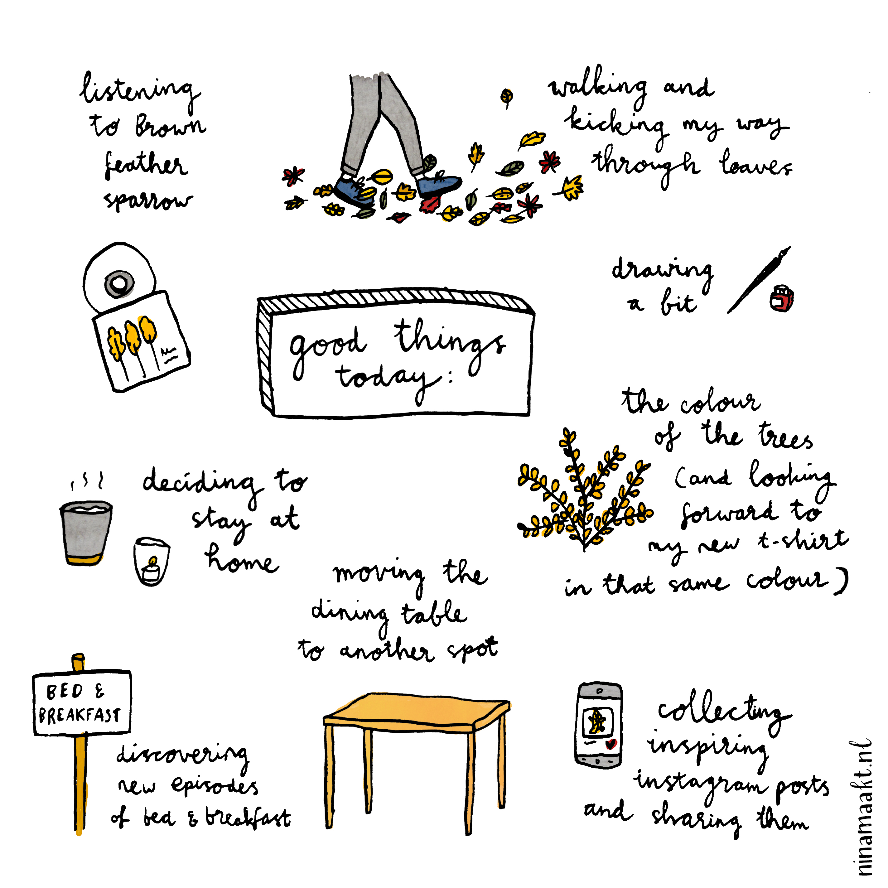 En omdat ik in november geen nieuwe opdrachten had aangenomen, werd het op een gegeven moment vanzelf weer wat rustiger. Om het te vieren bleef ik bijna een hele week thuis, deed ik de dingen kalm aan, sliep ik uit, werkte ik op mijn gemakje aan de keukentafel, maakte ik extra veel wandelingen en rolden er ineens weer wat gedichten en fijnedingenlijstjes uit mijn pen. Dat was fijn, en ook wel nodig. Even een beetje afstand. Ik had bovendien net de podcast-episodes ‘Menuha‘ en ‘What happens every 6 months‘ van Rob Bell geluisterd, en die gingen daar precies over: rust, afstand, opladen, ritme, genieten van alles wat er is, in plaats van focussen op alles wat nog moet.