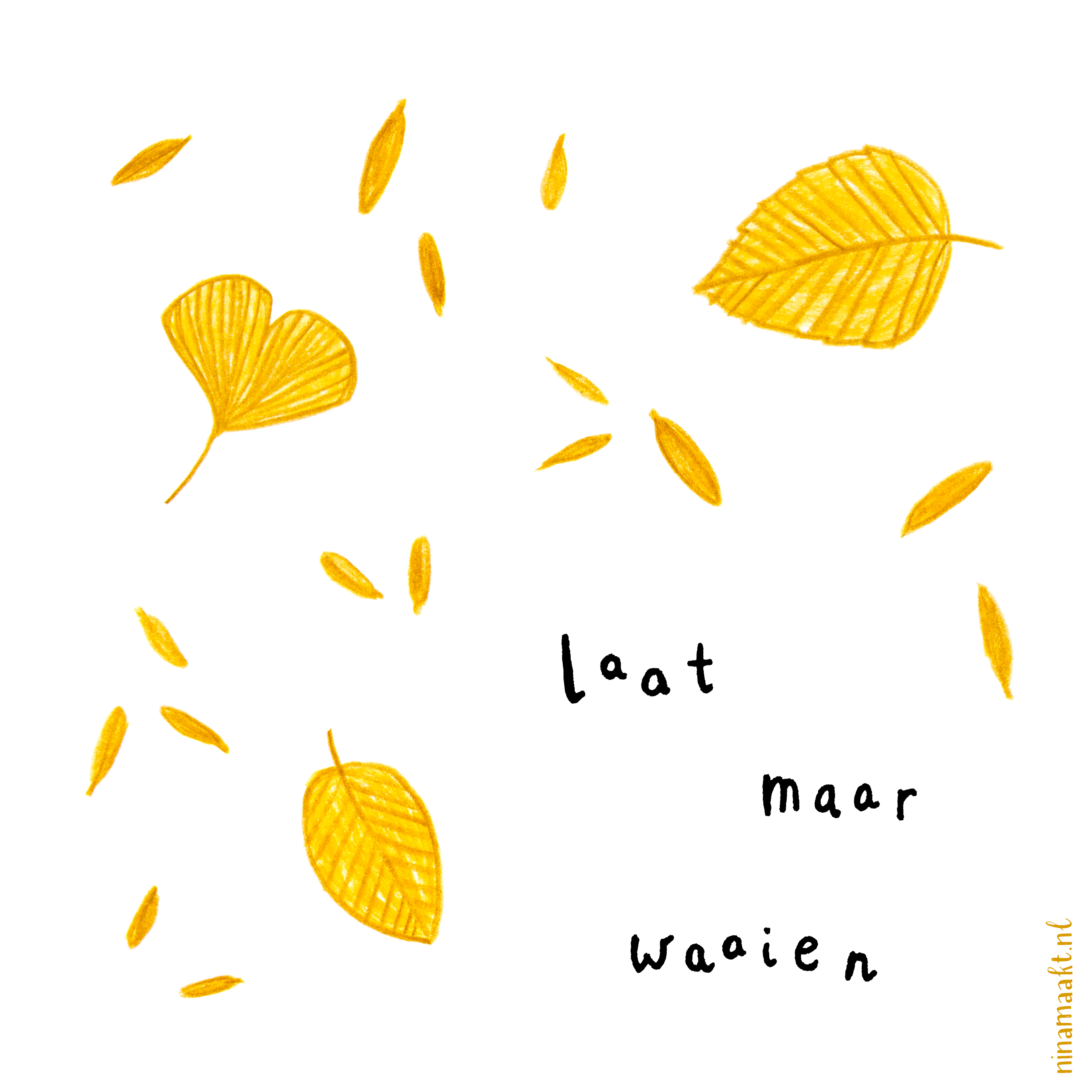 Was oktober dan alleen maar fijn en mooi en goed? Nee hoor. Er waren een paar flink sombere dagen, waarop ik het allemaal even niet meer wist. Er waren dingen die ik spannend vond en dingen die me onrustig maakten. Ik hing een briefje boven mijn bureau met de tekst ‘het is al goed’, want dat is het. Zelfs als het even niet goed is. En soms dacht ik aan het tekstje op een van mijn nieuwe kaarten: Je bent er. Want soms is dat genoeg.