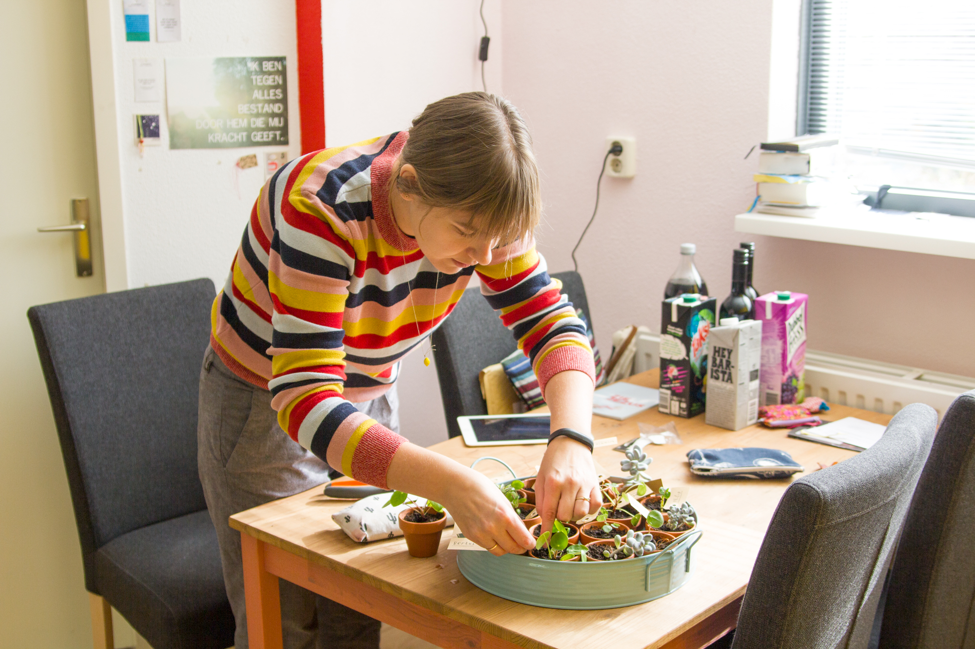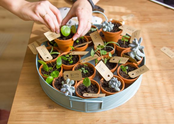 Oja, en dit hoort eigenlijk niet per se onder dit kopje, maar ik moet het toch nog even vertellen want ik heb er gezellige foto’s van en het was leuk: Ik vierde ook (eindelijk!) mijn verjaardagsfeestje en in plaats van een zakje snoep zoals vroeger, kreeg iedere gast een klein plantje mee naar huis. En ik had elk plantje een naam gegeven en dat was zo leuk! En minstens zo leuk was het om te zien hoe mensen een plantje uitkozen :-)