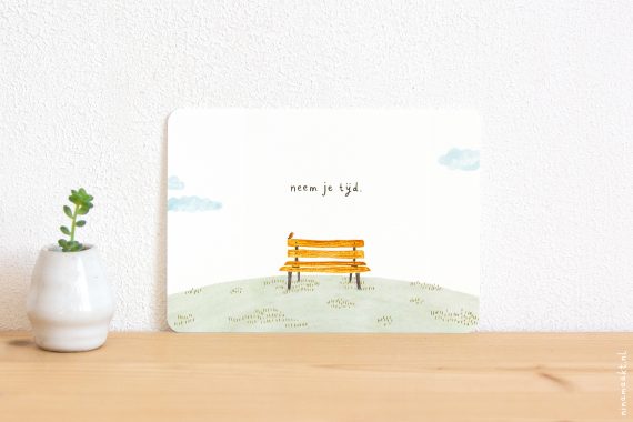 Begin deze maand gingen er nieuwe kaarten de webshop in! Eindelijk weer een stapel nieuwe, hoogstpersoonlijke ninamaakt-producten. Heerlijk om ze met de rest van de wereld te mogen delen. En natuurlijk gaat dat altijd gepaard met een flinke dosis nieuwsgierigheid. Nieuwsgierig hoe mensen zullen reageren, welke kaarten meteen de deur uit mogen en welke iets meer gewenning nodig hebben. Gelukkig mocht ik in de weken die volgden een heleboel bestellingen op de post doen. De kaart ‘Neem je tijd‘ was het populairst, blijkbaar konden we allemaal wel wat rust, tijd en ruimte gebruiken. :)