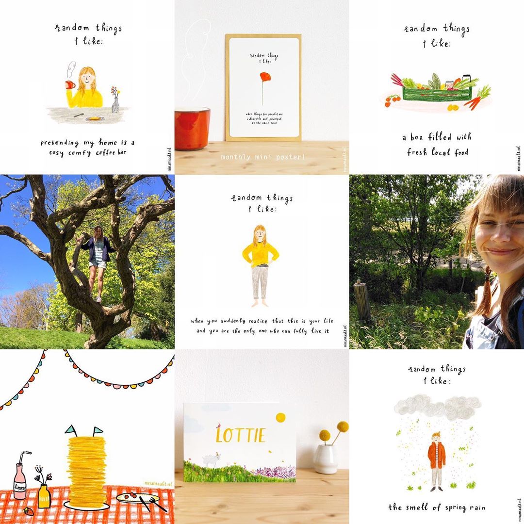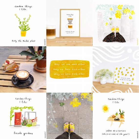 H e b vanochtend gewandeld op/door/over het Hijkerveld. Het is daar zo mooi. L u i s t e r allerlei liedjes, van Oh Wonder tot Stef Bos en van David Benjamin tot mijn broer. K o e s t e r een inspirerend gesprek dat ik vorige week had. D r i n k mijn koffie het liefst met havermelk. B e n blij met lieve vriendinnen. K r i j g de laatste maanden zoveel bestellingen binnen! Dankjewel. M i s Nijmegen soms nog steeds. Ook al woon ik er al bijna zeven (!) jaar niet meer. G e n i e t ervan om soms te doen alsof mijn woonkamer een koffietentje is. S c h r i j f veel. In mijn mini-schetsboekje, in mijn soort-van-dagboek, in mijn 30-dagen-schetsboek en soms ook nog op mijn geheime blog. De woorden blijven maar komen. W e r k alweer twee maanden vanuit huis. Dat gaat prima, maar het voelt ook gek dat mijn fijne gloednieuwe werkruimte nu dus al twee maanden leeg staat. D e n k veel na. V r a a gme verwonderd af hoe deze coronatijd in ons geheugen opgeslagen zal worden. Een van de eerste woorden die in me opkomt is intens. Alsof alle kleuren (zowel de lichte als de donkere) dieper en meer verzadigd zijn. D a n s soms op dit liedje. En op deze trouwens ook. P r o b e e r deze hele maand elke avond een pagina van mijn schetsboek te vullen met tekeningen en gedachtes. Tot nu toe lukt dat. K i j k regelmatig even dit filmpje, want het zijn de allerfijnste vibes die ik kan bedenken. V i n d het gezellig om zoveel samen met Floris thuis te zijn. L e e s ontelbaar veel boeken tegelijk. (Zeven nu, denk ik?) V e r h e u g me op alle mooie dingen die nog komen gaan. T e k e n even niet zoveel, behalve dan voor mijn 31-dagenprojectje en voor mijn werk. Oké, dus misschien toch wel veel. D o e jou de groetjes :-)