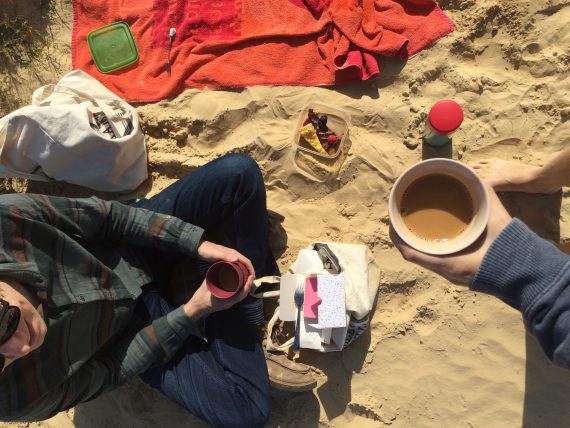 Het was sowieso een fijn en vrolijk verjaardagsweekend, want ik kreeg cadeautjes in bed, het leek wel zomer, een van mijn favoriete bands bracht een nieuw liedje uit en ik voelde me mezelf. Én de taart was gelukt. En op zondag picknickten Floris en ik met restjes taart op het strand.